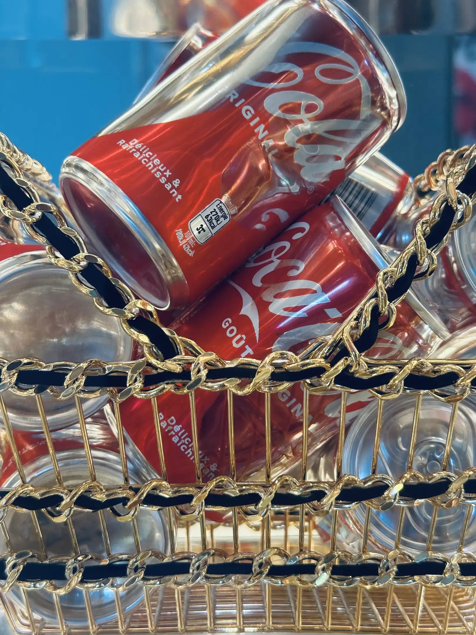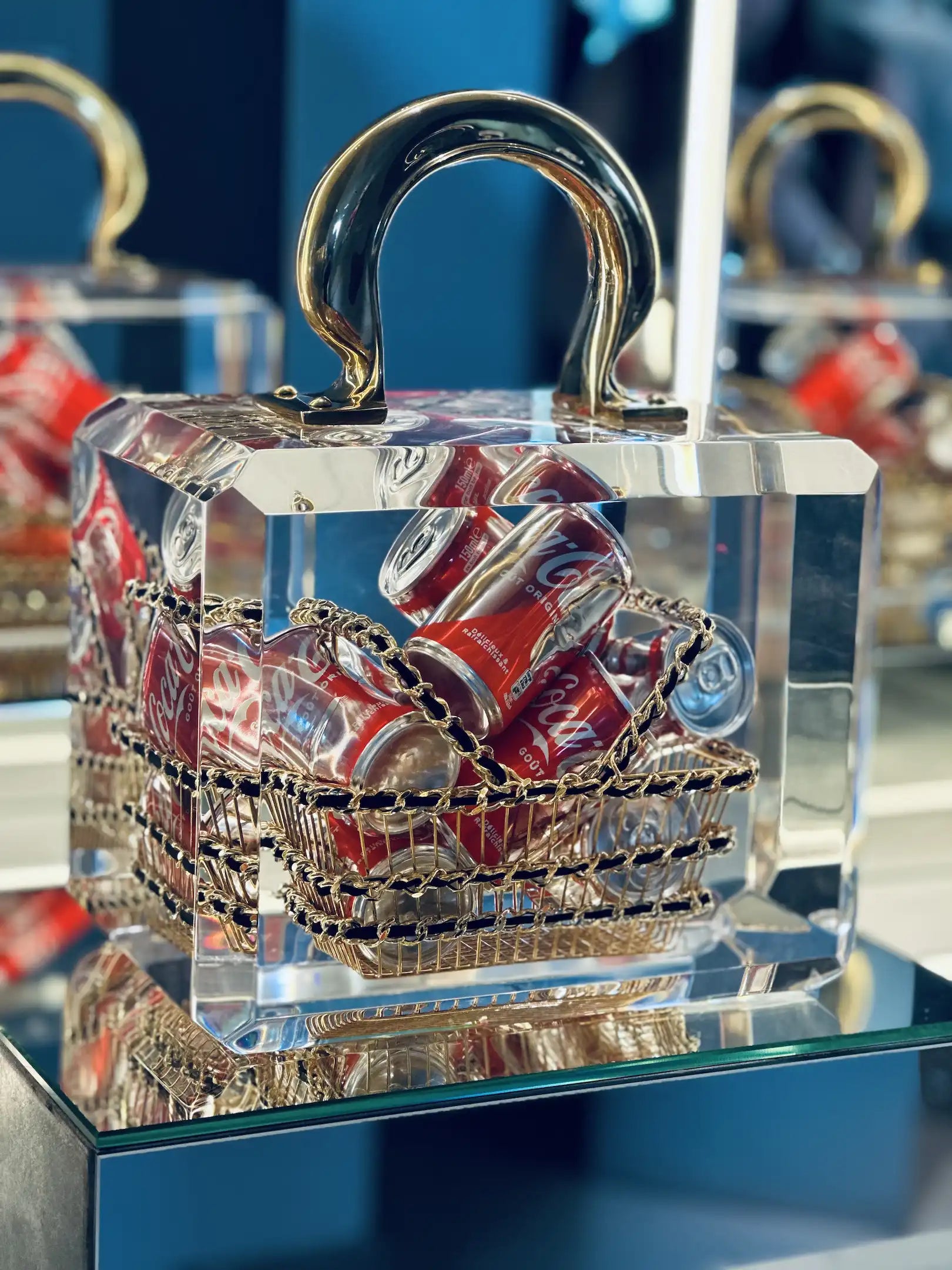 Dans sa collection de “Basket Bag”, Fred puise dans l’un des moments les plus marquants de la mode contemporaine : le défilé Supermarket de Karl Lagerfeld en 2014. Il détourne l’objet culte, le panier de supermarché, doré et orné d’une chaîne pour en faire une sculpture pop, entre luxe et dérision. Le Basket Bag, c’est l’art de rendre l’ordinaire iconique. Un must-have.